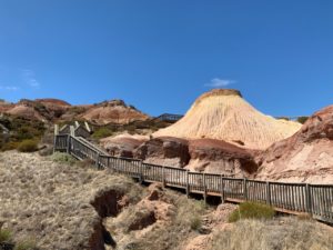 Eine wirkliche Sehenswertigkeit war der Sugarloaf. Dieser Hügel von ca. 50 m entstand durch Erosion von Regen und Wind über viele tausend Jahre. Natürlich wollten wir noch mehr sehen von dieser wunderschönen Küste und machten den «Glacier hike» und wie der Name schon verrät ist alles auf die vor Millionen von Jahren geschmolzenen Gletscher zurückzuführen. Es war sehr eindrücklich. Die Reise führt uns nun weiter nach Tarunga (Barossa Valley). Das erste Weingut welches wir besuchten war das Chateau Tarunga. Ein riesig grosses Weingut mit tollem Umschwung und Park. Eine Dame im «Celler Dor» empfing uns und beriet uns mit dessen Wein. Gemäss ihr ist einer der Inhaber ein Schweizer und sie informierte uns darüber welcher Wein im Coop verkauft wird. Weil wir zu Fuss da waren (was übrigens auch besser so war) liessen wir unsere Bestellung auf den Folgetag zur Seite stellen. An einer mega coolen Bar im Aussenbereich machten wir halt und assen ein Plättli mit Käse, Oliven und Brot und tranken einen feinen Weisswein. Am Abend brieten wir ein Känguruhfleisch, welches uns nicht schmekte. Wahrscheinlich fehlte uns das Know how für die Zubereitung. Janu, es gab auch noch Beilagen….. und Wein natürlich. Am anderen Tag besuchten wir das Weingut von Peter Lehmann, welches wir bereits vor 15 Jahren besuchten. Auch da hatten wir keinen Wiedererkennungsfaktor aber der Wein war gut wie immer. Diese Bestellung nahmen wir dann aber gleich mit. Danach fuhren wir nach Quorm was auf dem Weg zu den Flinders war. Der Mann vom Camping gab uns Tips für ein Nachtessen bei Emilie und für die Reise. Es war Samstagabend und der Ort war wie ausgestorben. Emilie hatte geschlossen und so suchten wir nach einem geöffnetem Restaurant. Ein Hotel mit Bar war das einzige Resti und somit gingen wir hinein. Die Bar war voll und mit ihr auch die Gäste mit Hosen, welche den Einblick in die Region, wo der Rücken den schönen Namen verliert, gewährte. Nicht jedermanns Sache…..! Das Essen war dem Haus entsprechend, zum Beispiel einen Salat ohne Sauce und alles andere aus dem Oel (Battered wie sie es hier nennen). Auf dem Campingplatz waren wir und ein Wohnmobil die einzigen Gäste. An diesem Ort hatte es einen unbeschreiblich schönen Sternenhimmel aber ich konnte nicht allzu lange schauen weil es in der Dunkelheit unheimliche Geräusche gab….