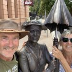 In Maryborough war der Hiru zum Service angemeldet. Für uns bedeutete das, dass wir uns im Städtchen umsahen, denn wir hatten einen ganzen Tag Zeit. Als erstes stellten wir fest, dass die Fussgängerampel in Form von Mary Poppins war. Bald schon sahen wir die Statue von Mary Poppins vor dem Museum der Geschichte und erfuhren, dass hier der Geburtsort von ihr war. Unterwegs trafen wir auf die «Maryborough Match Making Machine» wo wir natürlich gleich unsere Beziehung testeten ob wir zusammen passen oder nicht. Das Resultat liess alles offen, denn der Zeiger pendelte zwischen No, Maybe und Yes! Im Shopincenter liessen wir unsere Füsse mit einer Pediküre verwöhnen. Genau als wir fertig waren, kam der Anruf, dass wir unser Auto abholen können. Die Nachricht, dass sie alle Radlager ersetzen mussten weil sie voll mit Sand und Wasser waren, überraschte uns schon. Möglicherweise Nachwehen von Cape York und Fraser Island. Aber was sein muss muss sein. Unser Baby lief wieder wie geschmiert! Am nächsten Morgen fuhren wir nochmals bei der Garage vorbei, um die Unterlagen für den fälligen Oelkühler zu holen. Auf dem Weg hielten wir bei einem Campinggeschäft an und kauften uns ein «Scheiss-Zelt», welches wir tatsächlich gut auf Fraser Island gebraucht hätten. Janu, wir fahren ja noch genug durch das Outback und werden froh sein um diese Schutzhülle. In Noosa zielten wir den Camping Noosa River Holiday Park, gleich am Wasser an und mussten aber hinnehmen, dass er ausgebucht ist. Sie hatten Mitleid mit uns und offerierten uns auf einem Parkplatz zu übernachten und am nächsten Tag auf einen Platz umzuziehen. Noosa ist eine Touristenstadt mit vielen Wasserwegen wie in Venedig. Der Beach ist definitiv mehr besetzt als alle anderen Strände die wir gesehen haben. In der Nacht regnete es wieder und wir wurden ab dem seltenen Geräusch wach. Aber am nächsten Tag schien die Sonne wieder. Unser Aufenthalt in Noosa diente auch der Sache um den Oelkühler reparieren zu lassen. In der Garage machten sie ihre Arbeit aber das Leck lag nicht an den Dichtungen sondern am Kühler selbst. Am nächsten Morgen konnten wir das Auto nochmals bringen und da haben sie den Kühler ausgewechselt. Kurz vor dem Mittag konnten wir den reparierten Hiru wieder abholen und fuhren direkt zur ARB in Northlake wo wir das Auto für ein neues, verstärktes Fahrwerk angemeldet hatten. Diese benötigten Hiru bis zum zum nächsten Tag und so entschieden wir mit dem Zug nach Brisbane zu fahren und in einem Hotel abzusteigen. Kaum in der Stadt angekommen lachte uns ein Pub an und wir feierten unsere Umrundung um Australien mit einem kühlen Bier. Im Hotel nahm ich ein Bad in der Badewanne und genoss es in vollen Zügen. Für das Nachtessen liefen wir nochmals an der South Bank entlang und durch den Park. Im Zentrum gingen wir die tollen Sushi essen und schlenderten noch durch die Stadt. Am anderen Tag fuhren wir mit dem UBER nach Northlake zurück und holten Hiru. Dort machten sie uns die Mitteilung, dass einen Schlag am Chassis einen Riss verursachte und wir diesen möglichst bald reparieren lassen sollten. So ein Ärger, das passte überhaupt nicht in unser Zeitplan. Wir hatten uns um ca. 16:00 Uhr bei Vicki in Coomera angemeldet (Francois war in Indien auf einer Wanderung). Auf den nächsten Tag hatten wir den Termin beim Reifenhändler, welcher neue Felgen und Pneus (285/75/16) montierten. Hiru kannte sich selbst kaum noch, er war so schön und auch ziemlich gewachsen. In der Zwischenzeit holte Vicki Fransois am Airport ab und wir trafen uns alle bei ihnen zuhause. Fransois war ziemlich erschöpft und musste sich von der Reise erholen. Auch wir gingen bald mal ins Bett. Doch die Rep am Chassis musste noch gemacht werden. Hanspeter ging am anderen Morgen um 06:00 Uhr zum Schweisser um das machen zu lassen. Als er zurück kam staunten wir nicht schlecht…. Der Schweisser hat eine Drahtbürste genommen und es kam zum Vorschein, dass es nur Dreck war und keinen Riss. Freude herschte! Also packten wir unsere Sachen, verabschiedeten uns von unseren Freunden und zogen los Richtung Westen, quer durch Australien.