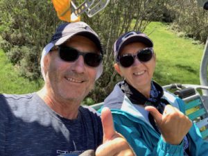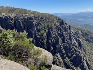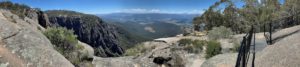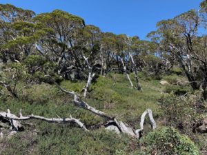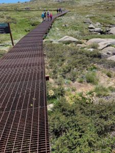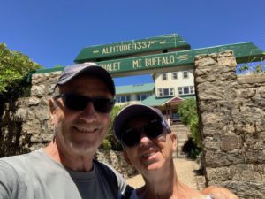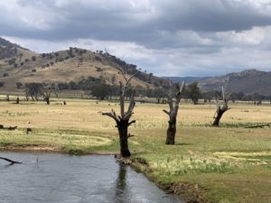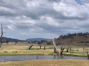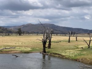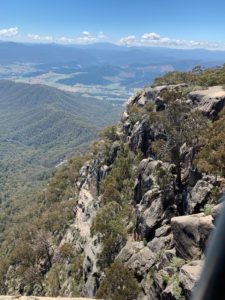 Nach dem reichhaltigen Frühstück fuhren wir auf den Charlotte Pass auf ca. 1835 m. Die Landschaft war gespenstisch. Sämtliche Bäume waren abgestorben, dürr und weiss. Im Skigebiet Perisher Village war alles ausgestorben wie Falera im Sommer. Auf dem Pass hingegen war ein reges Treiben von Bikern, Wanderer und Touristen aus aller Welt. Da sahen wir, dass man zu Fuss oder mit dem Velo easy zum Mt. Kosciuszko kommt. Ganze Familien mit ziemlich kleinen Kindern, welche kaum auf das Velo kamen, machten sich auf diesen Weg. Auf dem Rückweg nutzten wir die Gelegenheit und versuchten es unsere Drohne zu starten. Sie startete auch aber für nur kurze Zeit, denn der Akku war schon wieder leer. Heute war das Wetter wunderbar und wir konnten auf den Campingplatz in Jindabyne, welcher wir am Vortag ignorierten wegen dem Regen. Ein guter Tag ging zu Ende. Am Morgen kamen wir nicht wie von uns gehofft, frühzeitig auf die Strasse. Das Ziel war hoch hinaus auf den Berg und zwar auf den Mount Kosciuszko, der höchste Berg in Australien mit 2228 m.ü.M. Mit Wanderschuhen und Rucksack zogen wir los. Zuerst ging es mit der Sesselbahn (wir wurden genau angewiesen auf welchen der vier Plätze auf dem Sesseli wir sitzen mussten, 1 + 2) auf 1930 m, mit dem höchstgelegenen Restaurant in Australien «Eagles Nest». Dann kam unsere grosse Überraschung! Der ganze Weg auf den Gipfel war auf einem Gitterrost und man durfte nur auf diesem gehen. Es war wie auf einer Radiowanderung und die meisten kamen mit leichten Turnschuhen. Wir fühlten uns ziemlich doof! Auf dem Prospekt wurde der Weg mit 4 – 6 Stunden Wanderzeit angegeben was natürlich für die mit Kinderwagen oder Gehhilfe schon benötigt wird. Die Aussicht auf dem Top war toll. Es hatte sogar noch Schnee «von Gestern» und es war auch eher kühl, wie es halt so ist in den Bergen. In Colac Colac kamen wir erst spät an aber wir konnten noch einchecken und uns einrichten. Am Folgetag fuhren wir auf dem Murray Valley HWY und kamen bei Tallangatta vorbei. Mitte der 50er Jahre mussten die Bewohner umziehen, da man den Mitta Mitta River und Murray River zum Lake Hume aufstaute zu einem Stausee. Von der Strasse her sahen wir auf die gespenstisch wirkenden Spitzen abgestorbener Bäume, die aus den Fluten ragten. In Myrtleford übernachteten wir um in der Nähe vom MT Buffalo zu sein. Diesen zielten wir am nächsten Tag an. Eine sehr kurvenreicht Strasse führte uns auf den 1337 m hohen Berg. Das Chalet da oben war zu unserer Enttäuschung kein Resti sondern ein Haus im Baustil eines Chalet, welches im Jahr 1910 erbaut wurde. Heute werden da nur noch Führungen durch das in Original belassene Haus gemacht. Wunder schöne Wanderwege führten an einen See, welcher ebenfalls gestaut wurde und offensichtlich ziemlich kalt war, denn die Badenden trugen fast alle Neopren. Ebenfalls bot sich eine fantastische Aussicht über steil abfallende Abhänge über die hügelige Landschaft. Natürlich mussten wir auch die kurvenreiche Strasse wieder hinunter um dann gleich wieder hinauf und hinunter und hinauf über verschlafenes Skigebiet (Harrietville) mit dürren bizarren Bäumen und wieder hinunter bis nach Omeo. Da fanden wir einen Campingplatz der direkt an einem Flüsschen lag. Leider hat sich in den Bergen das Wetter, wie bei uns der Föhn, in eine Staulage verwandelt und es wurde recht kühl. Zum Glück gab es da einen roten Wohnwagen mit Pizza. Eingepackt in Daunenjacke und Regenjacke gingen wir zu diesem Wagen und setzten uns mit einer ausgezeichneten Pizza an den Holztisch. Es war eine interessante Stimmung – im Gegensatz zu uns sassen auch Leute da in kurzen Hosen und T-Shirt. Der Rotwein trug zu einer gelassenen Stimmung bei mir bei.