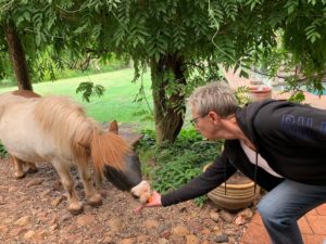 Es war der Hammer. Das B & B LaCama Hill war eine Farm mit Pferden, Vögel und Hund. Riiiisig gross und viel Umschwung mit einem sehr grossen Haus was vier Zimmer zur Vermietung anbot. Wir waren die einzigen Gäste und erhielten das schönste Zimmer mit grossem Badezimmer inkl. Whirlpool. Wir durften auch die grosse Küche (mit begehbarem Kühlschrank) benutzen und kochten auch da unser Abendessen. Unsere Wirtsleute, ein sehr sympathisches Paar, waren bereits im Bett. Es regnete ziemlich stark während der Nacht und wir waren froh, dass wir uns für das B & B entschieden haben. Am nächsten Morgen verwöhnten uns Marc und Lee-Anne mit einem hammer Frühstück mit allem drum und dran. Nun weiss ich wie man eine Mango aufschneidet und serviert! Danach durften wir noch ein Shetland Pony füttern und die Vögel (Kakadu, Papageien und weitere) beim Fressen beobachten. Der Himmel war nicht mehr so dunkel und wir entschieden uns zum Aufbruch.