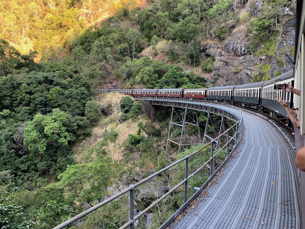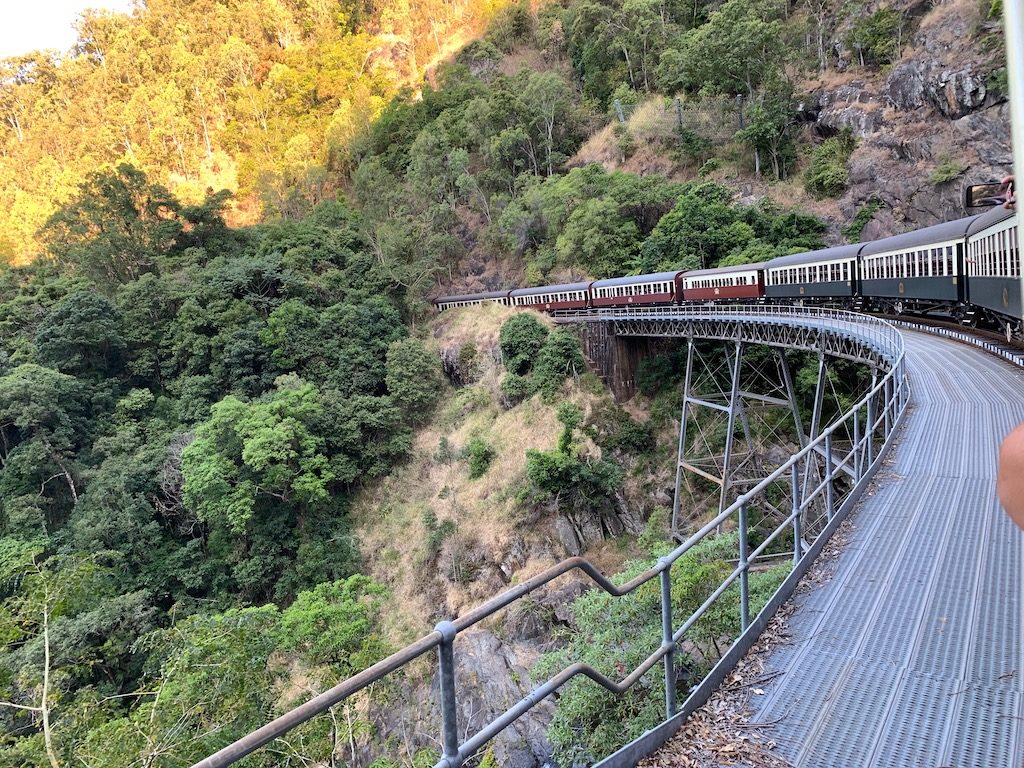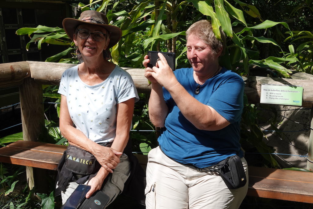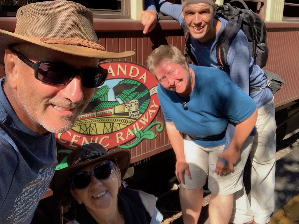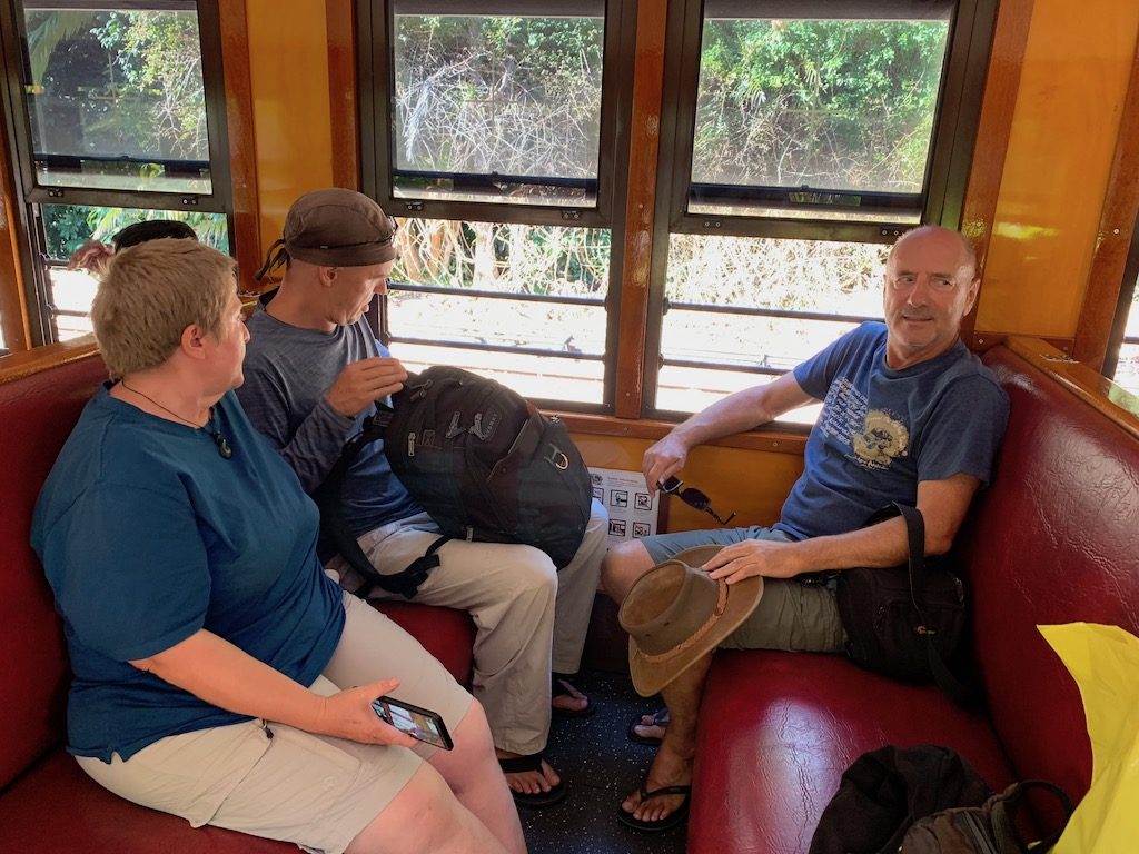 Am ersten Abend in unserer grossen Wohnung mit richtigen Zimmern und Betten etc. kochten wir Resten und freuten uns auf ein richtiges Bett und Badezimmer. Wieder einmal Ausschlafen ohne Zusammenpacken u.s.w., einfach in den unteren Stock gehen und Kaffee kochen, das war mal wieder schön. Nun war die Zeit gekommen wo wir uns vom Sand uns Staub verabschiedeten und unsere Troopys in die Waschanlage kamen. Hartnäckig lies sich die Ockerfarbe vom Weiss ablösen und lief mit viel Schaum davon. Ein völlig neues Gefühl, wenn man die Autotür auf und zu machte ohne, dass man rote Hände hatte. Wir kauften noch ein paar Sachen ein und gingen dann nachhause wo bereits mehrere Maschinen von Wäsche am Windelständer zum Trocknen hingen. Am Abend entschieden wir uns zum Thailänder zu gehen wo wir die einzigen Gäste waren aber es war sehr fein. Am Mittwoch hatte der Ketanga einen Termin in der Garage, das hiess früher Tag wach, weil Hanspeter die Beiden in die Garage begleitete und wieder mit nachhause nahm. Danach gab es Frühstück! Heute war einkaufen und Pedicure angesagt. Endlich ein Lichtblick für unsere schwarzen Füsse und viel Arbeit für die Frauen in diesem Geschäft. Mit Hobel und Raffel wurden die Fusssohlen bearbeitet bis ein relativ zufriedenes Resultat entstand. Ich erlaubte mir sogar etwas Farbe an den Nägeln und freute mich über dieses kleine Stück Zivilisation. Für den Donnerstag hatten wir ein Auto reserviert, um nach Port Douglas zum Schnorcheln zu fahren und dieses holten wir am Mittwochabend. Der Vermieter war nicht gerade ein Sympathieträger, auch das Büro sah entsprechend aus und genauso der Toyota- Corolla. Das Auto hatte längst keinen Glanz mehr, ganz zu schweigen von den Kratzern und Beulen rund herum. Bei der Übergabe lief der Vermieter wichtig mit einer Klemmtafel und Protokoll um das Auto und markierte «Schäden». Als Yves meinte er könne auch gleich das ganze Fahrzeug markieren, fand es der Vermieter nicht ganz so lustig. Am Donnerstag war noch früher Tag wach, nämlich am 05:45 Uhr, denn gemäss GPS dauerte die Fahrt nach Port Douglas ca. 1 Std. 8 Min. ohne unvorher-gesehener Stau oder so. Am Hafen trafen dann alle Gäste zu den verschiedenen Booten ein. Unser Anbieter «Wavelength Reef Cruises» war mit einem Katamaran für 48 Personen ausgerüstet wo wir aber nur 38 Personen waren. Bereits nach kurzer Zeit verlangsamte das Boot die Geschwindigkeit und wir sahen Wale die sich, zwar weit weg aber trotzdem gut sichtbar, an der Oberfläche tummelten. Beim ersten Halt war mir noch etwas kalt für das Nass aber ich ging mit der Masse mit….. Viele Korallen waren bleich, aber es hatte auch sehr schöne farbige Korallen und viele Fische. Leider konnte ich nicht sehr lange im Wasser bleiben, weil ich kalt hatte und kehrt bald wieder zurück aufs Boot um mich an der Sonne zu wärmen. Beim zweiten Riff blieb ich an Board und machte Fotos. In der Zwischenzeit bereitete die Crew den Lunch vor, der mit Salaten, Käse, Gemüse und Früchte reich gedeckt war. Der dritte und letzte Halt war am Opal Reef und weil ich vermutete, dass das der beste Spot sein wird, ging ich mit einem zweiten Anzug in Wasser. Es war sehr schön. Es hatte tolle Korallenformationen in verschiedenen Farben und eine grosse Vielfältigkeit an Fischen. Das Wasser war klarer und bot eine tolle Sicht. Es war ein grossartiger Ausflug. Auf der Rückfahrt sprachen wir nicht so viel, denn wir waren müde vom Wind, Wasser und Sonne. Weil wir etwas später vom Ausflug in den Hafen zurückkehrten kamen, waren wir auch etwas spät dran um unser Mietauto bis 18:00 zu retournieren. Ein Telefonanruf klärte die Möglichkeit, dass wir den Autoschlüssel deponieren können. Gesagt getan, um 18:02 Uhr waren wir vor der Vermietung aber natürlich keiner mehr da. Wir schmissen den Schlüssel unter der Tür durch einen Spalt ca. einen Meter in den Büroraum hinein und verliessen den Ort. Susanne hatte das Nachtessen bereits vorbereitet, so dass wir bald Teigwaren mit Lachssauce und Salat essen konnten und früh zu Bett gingen. Yves ging am anderen Morgen gleich zum Vermieter, um sich zu erkundigen ob alles ok war. Dieser behauptete keinen Schlüssel gefunden zu haben und somit kein Depot zurückerstatten würde. Nach einer endlosen Diskussion einigten sie sich, dass sich der Vermieter mit 20 $ für eine Schlüsselkopie zufrieden gab. Diese Vermietung Namens Car Bombwerden wir nicht empfehlenkönnen!!!! Der Freitag war wieder Garagentag für den Ketanga und wir gingen zu viert, um dann gemeinsam im Campingladen zu schmökern. Der Abend war reserviert für ein Treffen mit einem «alten» Bekannten von Susannes Schwager. Wir trafen uns mit Urs und seiner Partnerin im Cok and Bull und unterhielten uns über alte und neue Zeiten. Urs lebt bereits seit 23 Jahren in Australien und arbeitet heute in einer Mine. Wir buchten einen Ausflug auf den Samstag für nach Kuranda, ein altes Hippiedörfchen. Um 09:40 Uhr wurden wir von Shuttle abgeholt und zur Seilbahnstation gebracht. Mit dem Skyrail, welche ca. 10 km war, gondelten wir über Hügel, Regenwald und Flüsse. Mit zwei Zwischenstationen, wo wir aussteigen konnten und einen Rundweg durch den Regenwald machten benötigten wir ca. 1,5 Std. bis wir in Kuranda ankamen. Dieses kleine und hübsche Dörfchen bestand fast hauptsächlich aus kleinen Lädeli mit Allerlei Krimskrams. Beim German Tucker «Deutsches Wursthaus» konnten wir nicht Wiederstehen und assen eine Bratwurst mit Sauerkraut. Danach besuchten wir das «Australian Butterfly Sanctuary». Es war so schön so viele Schmetterlinge zu sehen. Leider hatten sie keinen der berühmten blauen Papilio Ulysses, welche scheinbar schwierig zum Züchten sind. Somit begnügten wir uns mit den Präparaten im Museum. Mit einer Glace in der Hand schlenderten wir wieder zurück Richtung Bahnhof wo wir das alte Züglein aus dem Jahre 1891 für die Rückfahrt nahmen. Ganz langsam und mit knarrenden Wänden hötterlete das Zügl
